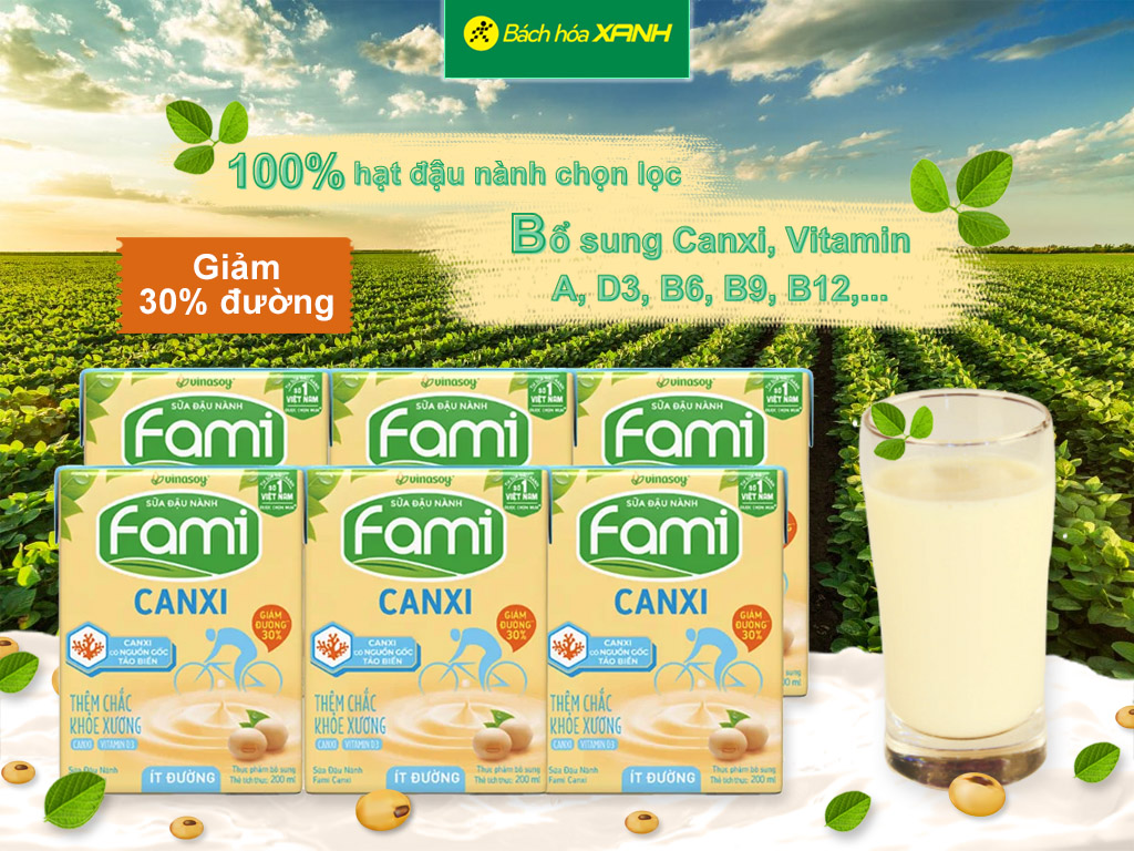 Lốc 6 hộp sữa đậu nành ít đường Fami Canxi 200ml