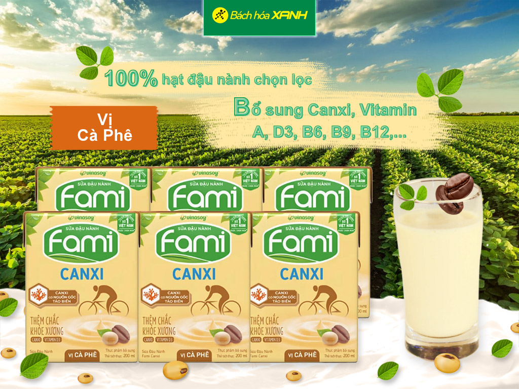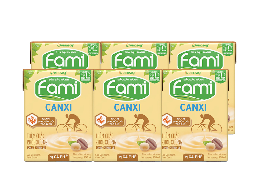 Lốc 6 hộp sữa đậu nành vị cà phê Fami Canxi 200ml