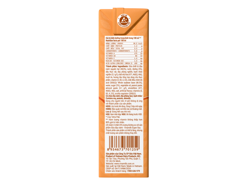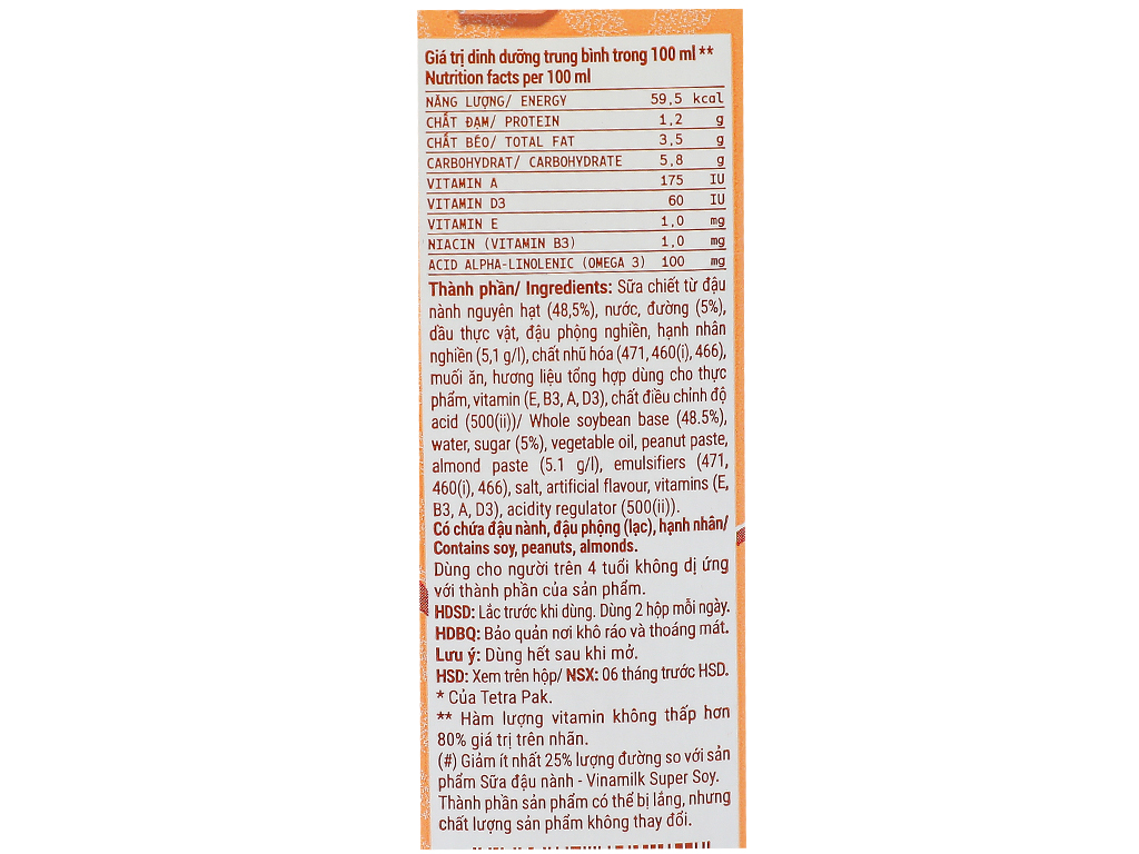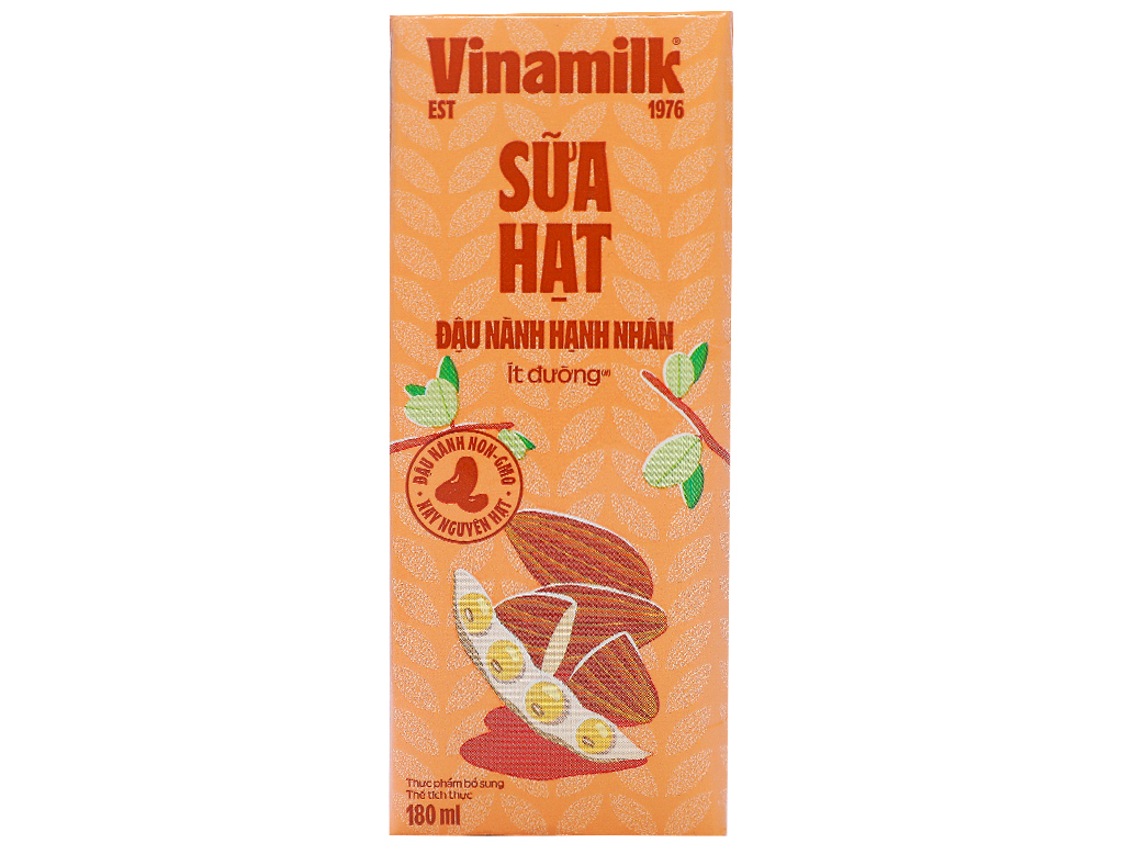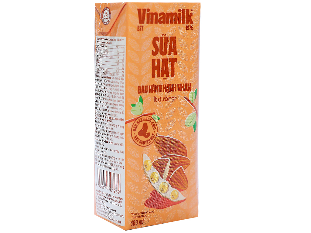 Thùng 48 hộp sữa đậu nành hạnh nhân ít đường Vinamilk 180ml