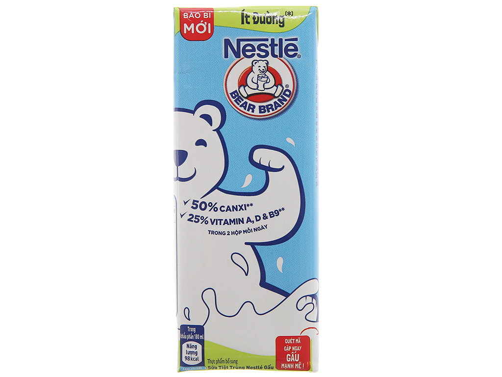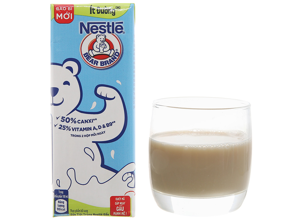Lốc 4 hộp sữa tiệt trùng ít đường Nestlé NutriStrong 180ml