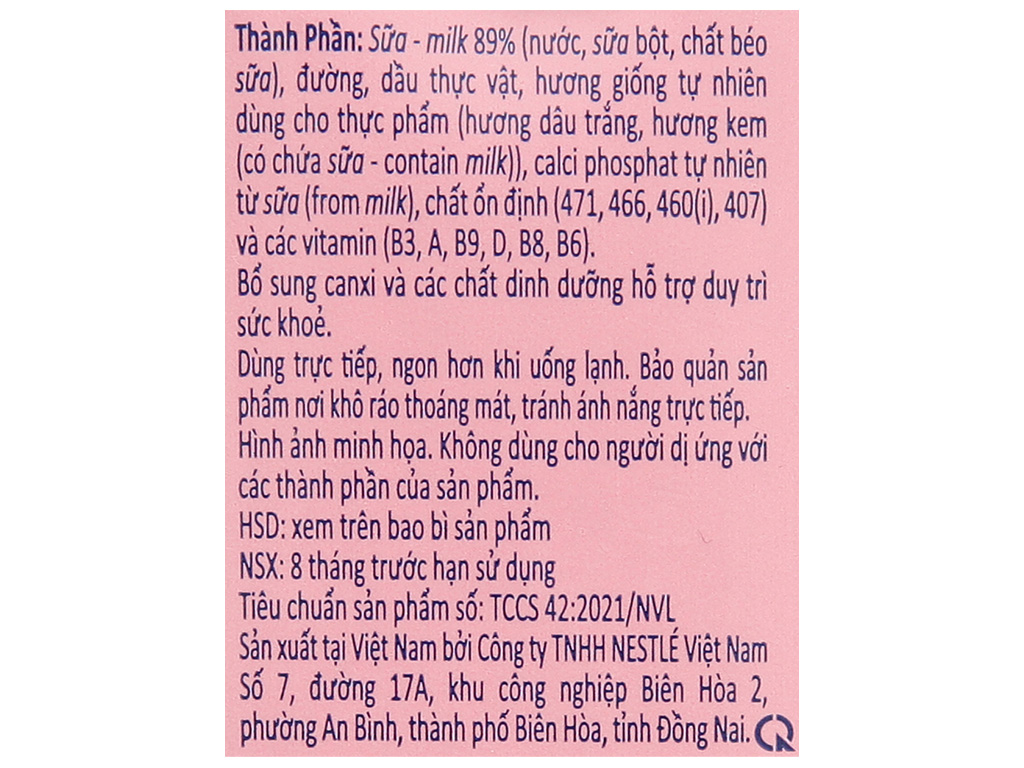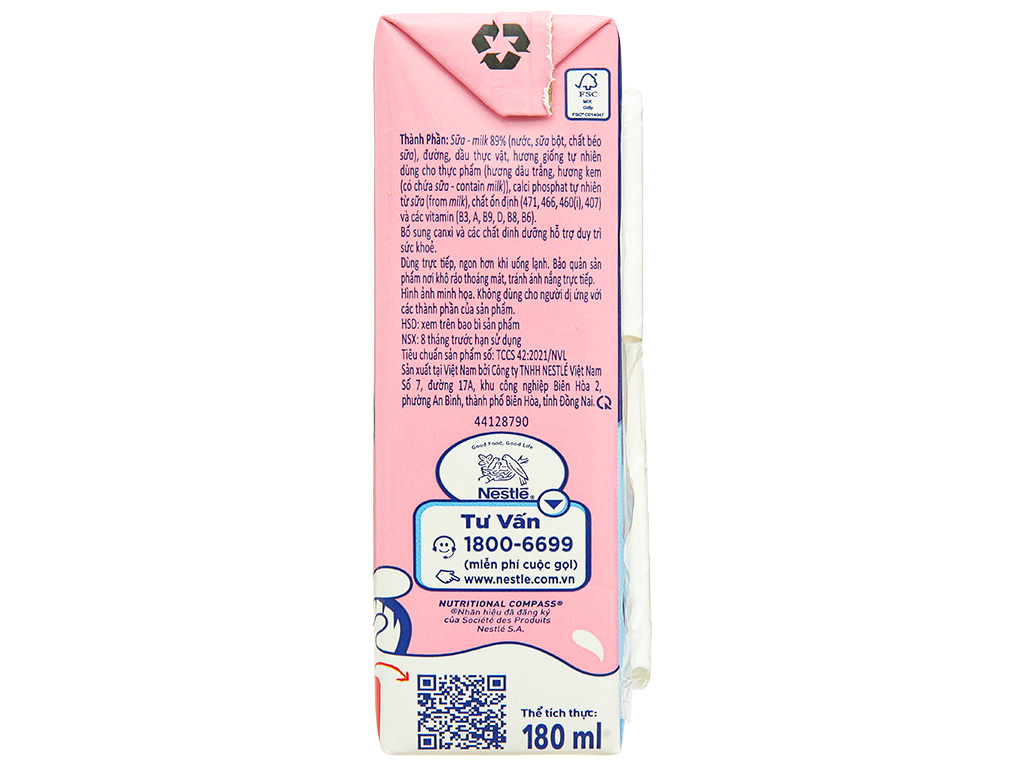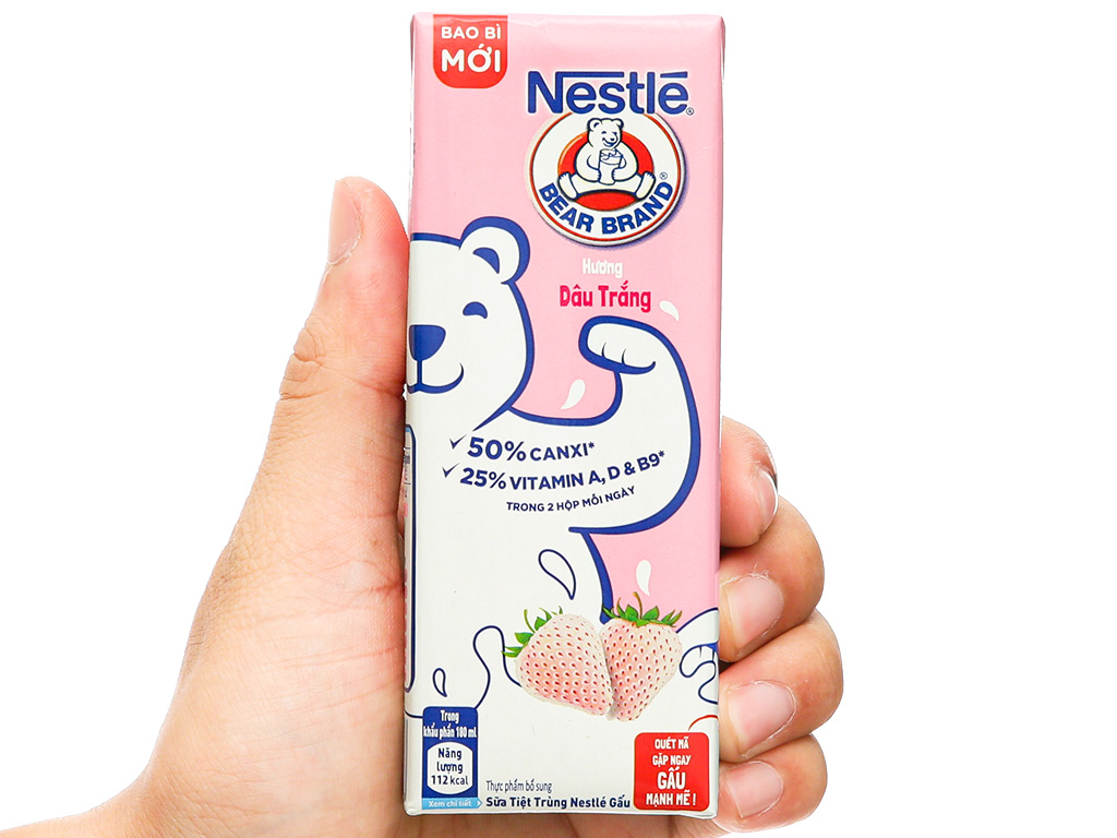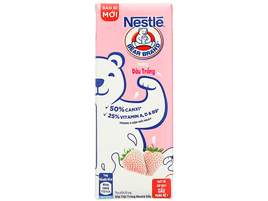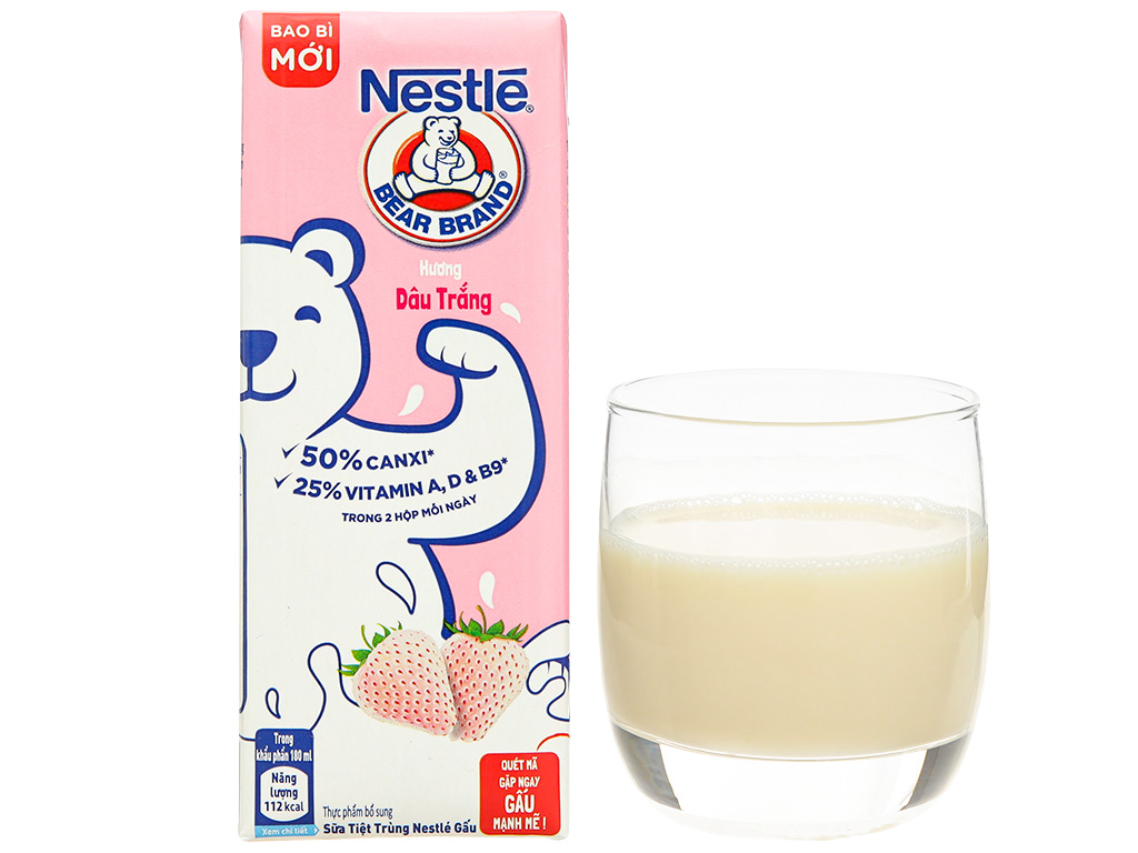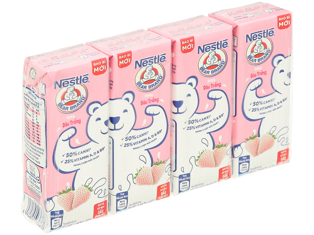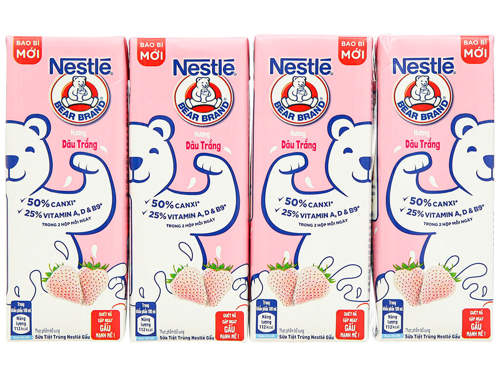 Lốc 4 hộp sữa tiệt trùng hương dâu trắng Nestlé NutriStrong 180ml