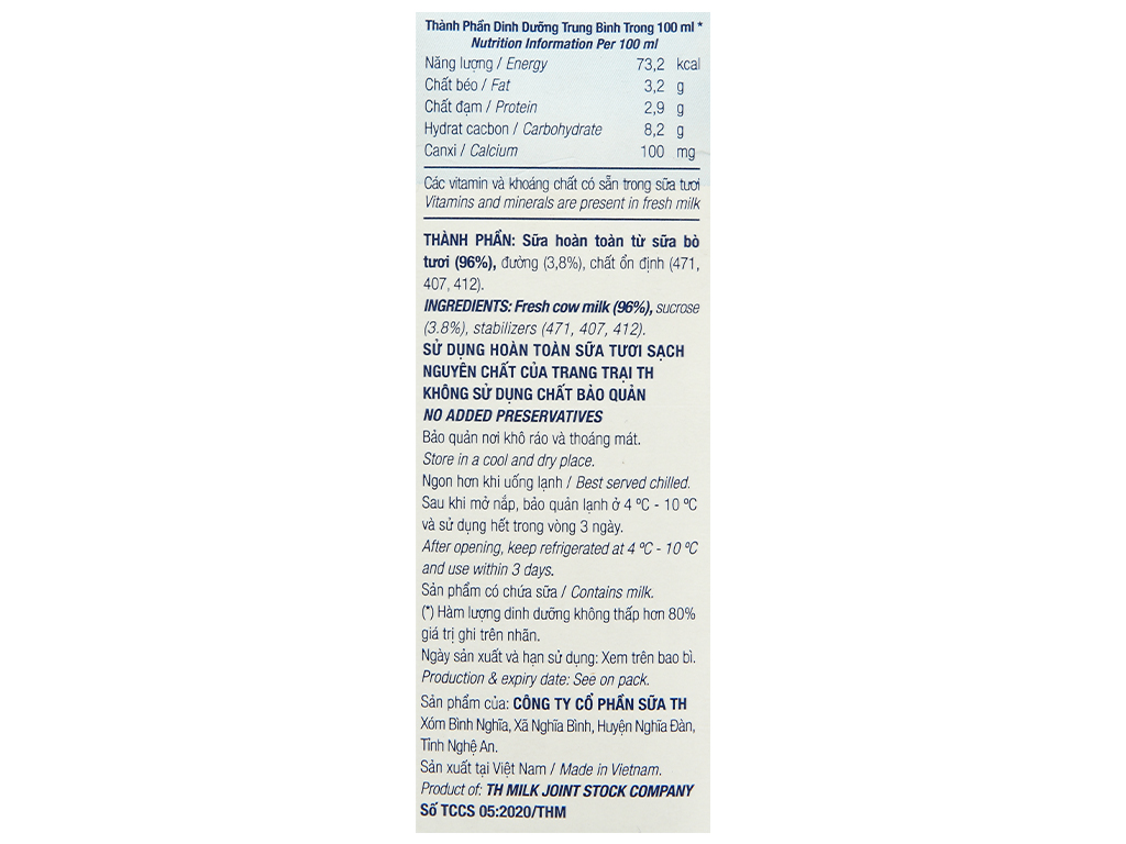 Sữa tươi tiệt trùng có đường TH true MILK hộp 1 lít
