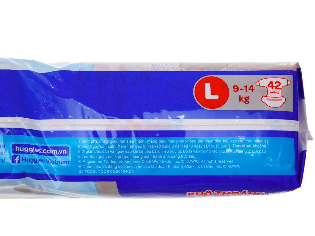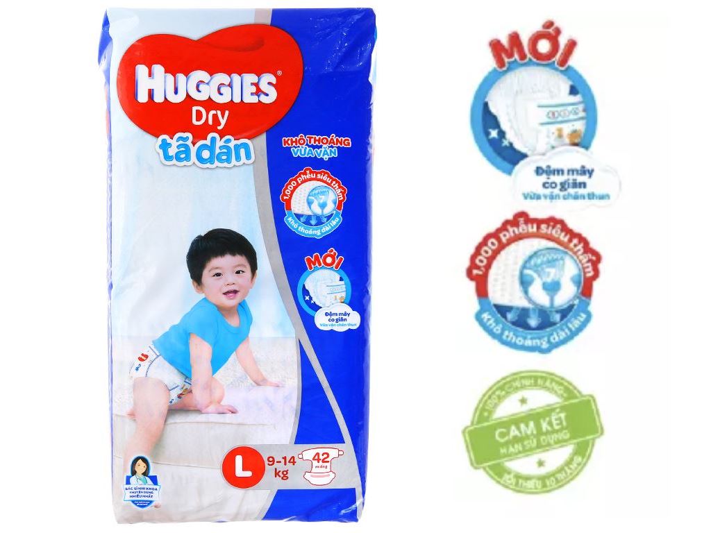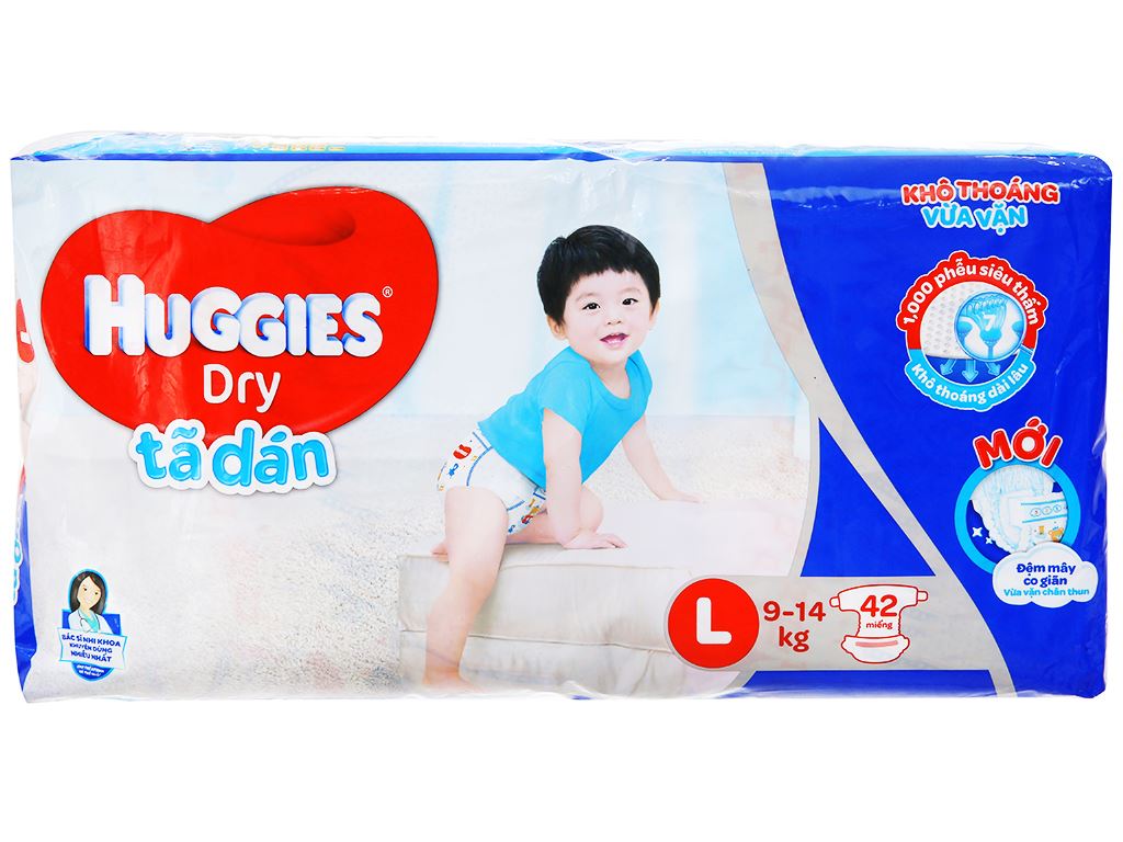 Tã dán Huggies Dry size L 42 miếng (cho bé 9 - 14kg)