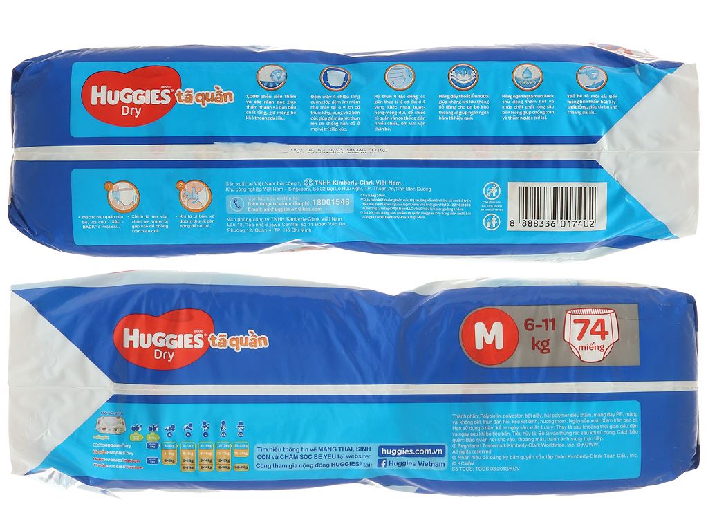 Tã quần Huggies Dry size M 74 miếng (cho bé 6 - 11kg)