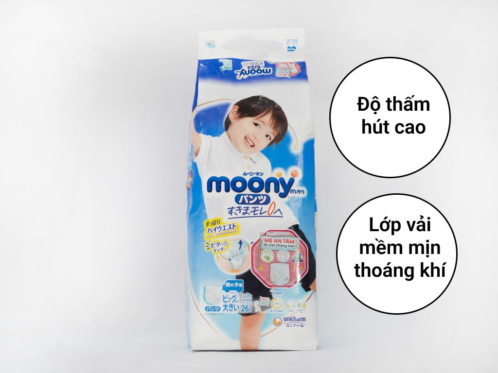 Tã quần Moony bé trai size XXL 26 miếng (cho bé 13 - 28kg)
