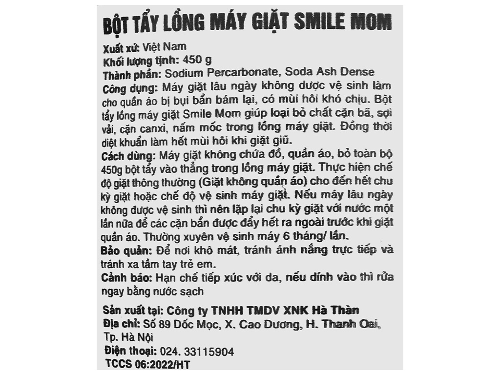 Bột vệ sinh lồng máy giặt Smile Mom túi 450g