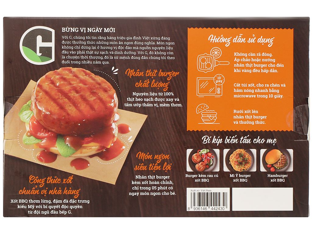 Burger heo xốt BBQ G Kitchen hộp 170g