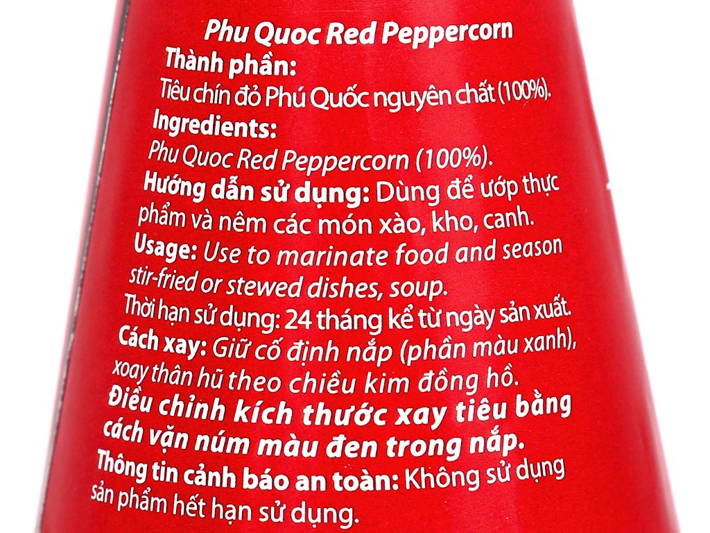 Tiêu chín đỏ Phú Quốc Dh Foods Natural hũ 45g (có nắp xay)
