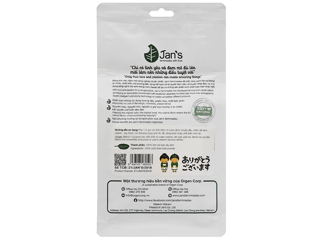 Bột cải kale sấy lạnh Jan's Powder bịch 60g (20 gói x 3g)