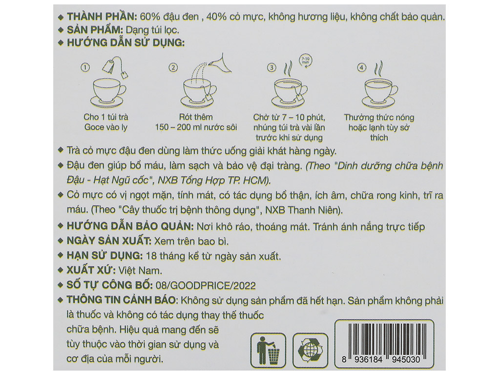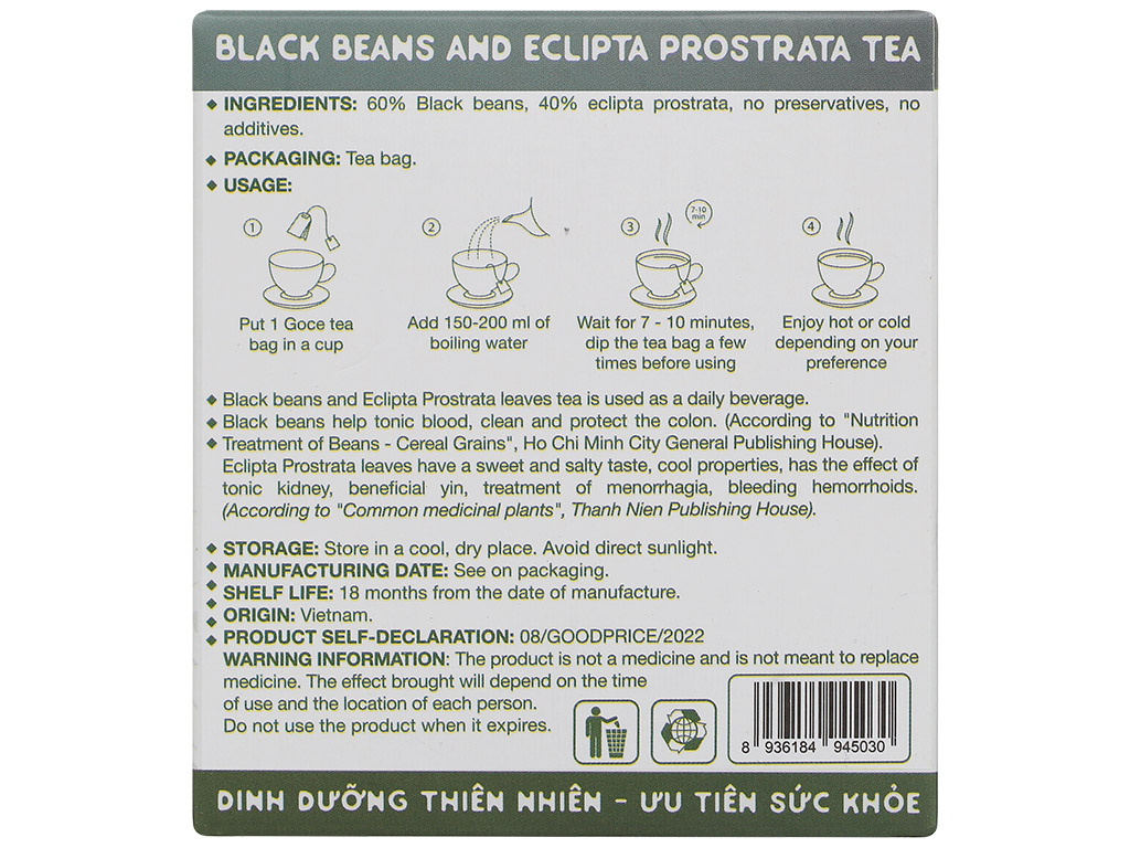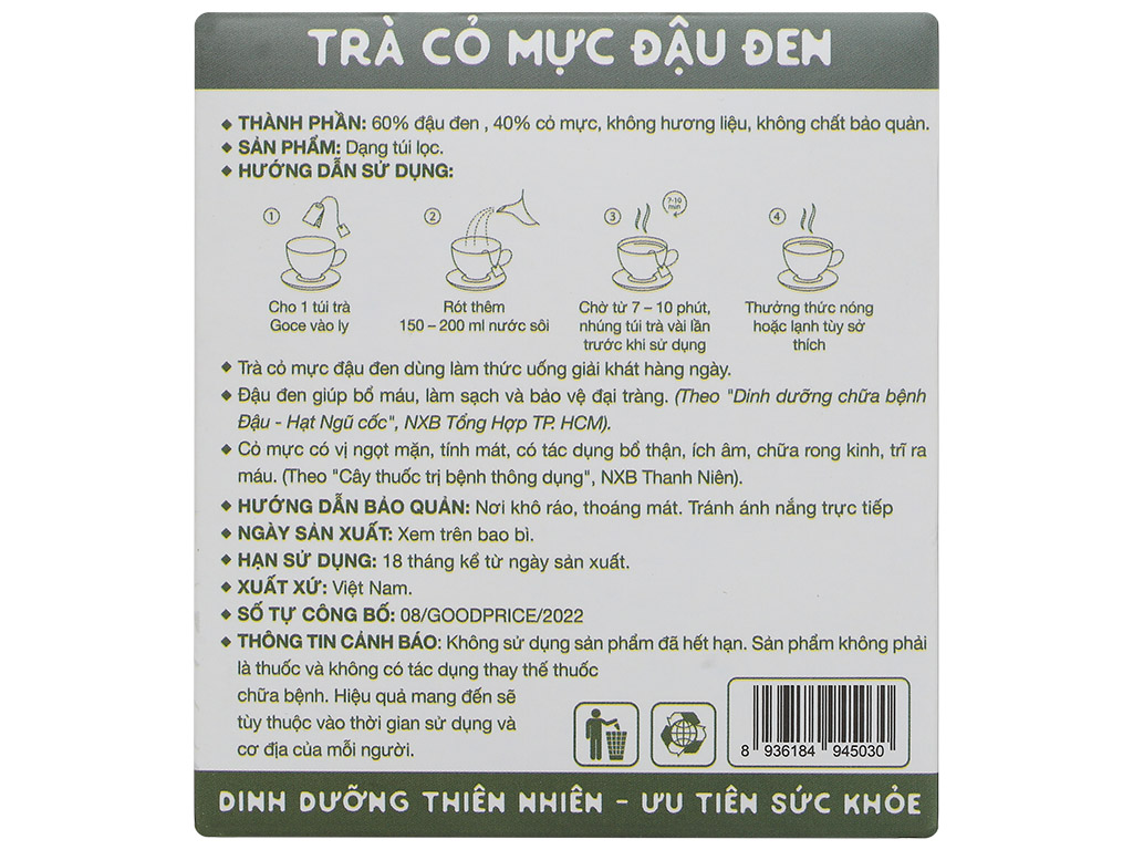 Trà cỏ mực đậu đen túi lọc Goce hộp 80g