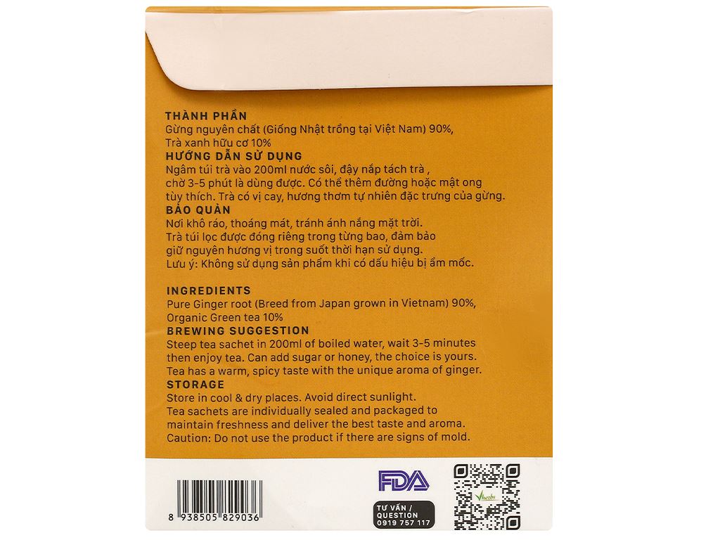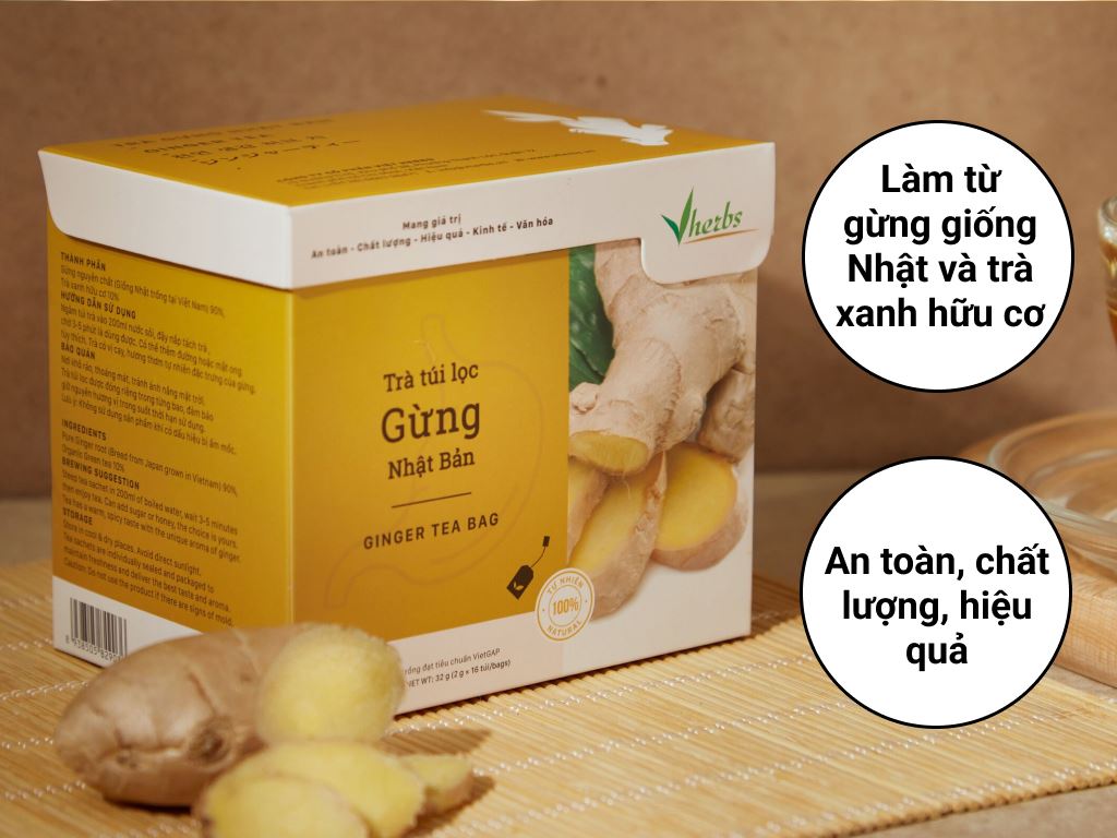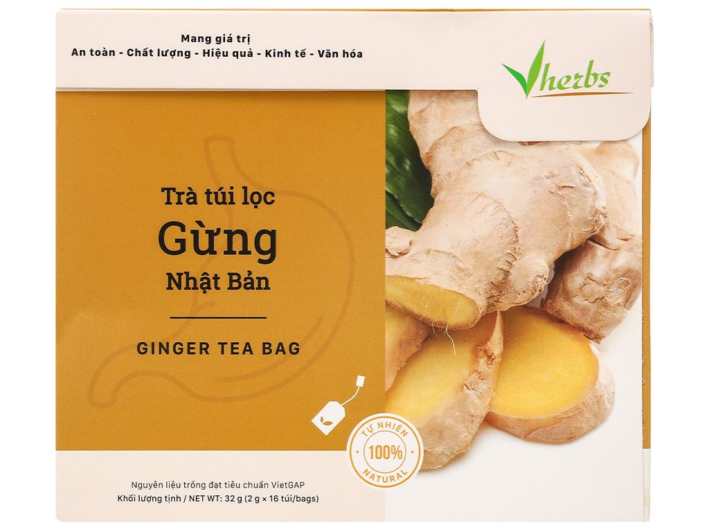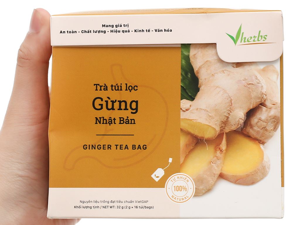 Trà gừng Vherbs Nhật Bản hộp 32g (16 gói x 2g)