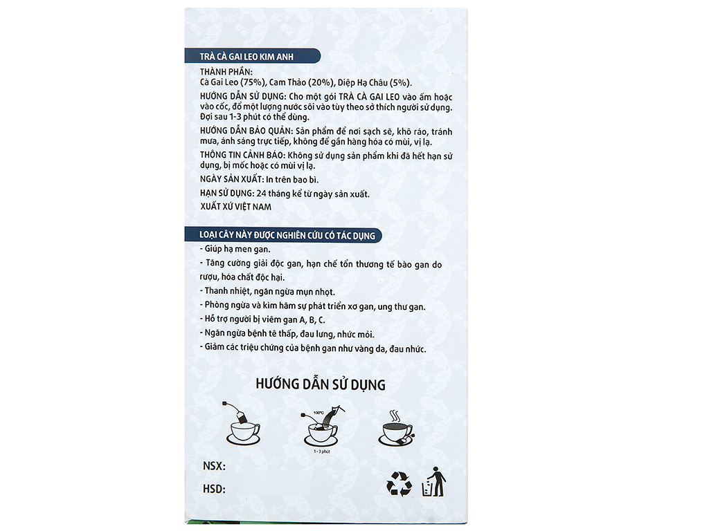 Trà túi lọc Kim Anh cà gai leo hộp 50g (25 gói x 2g)