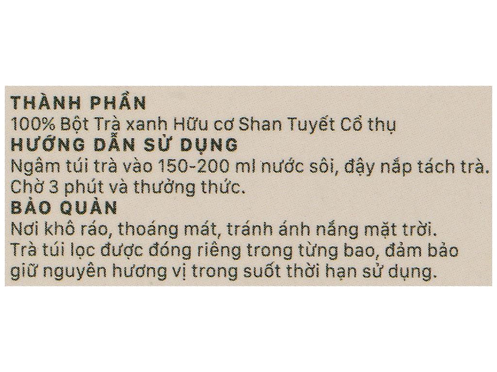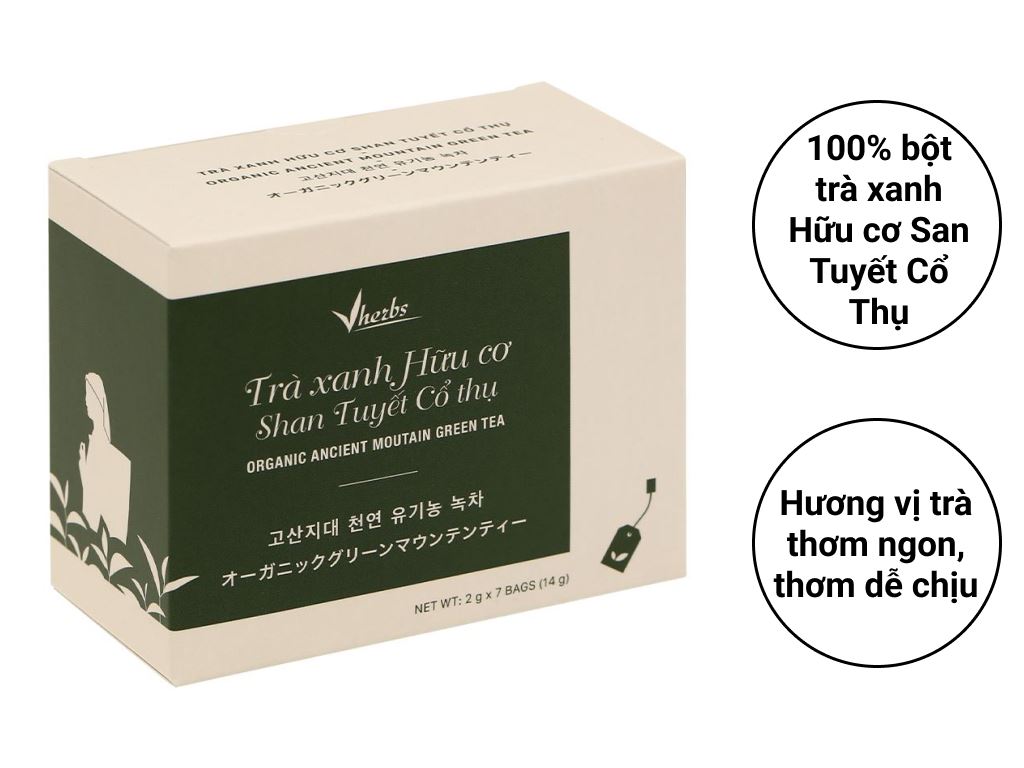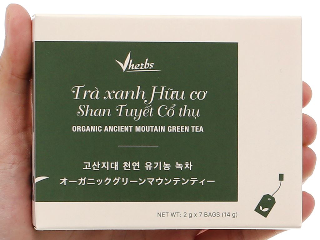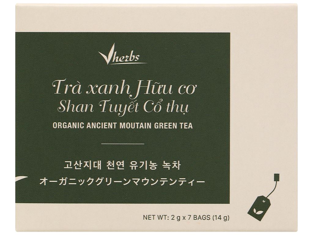 Trà xanh hữu cơ Vherbs Shan Tuyết Cổ Thụ hộp 14g (7 gói x 2g)