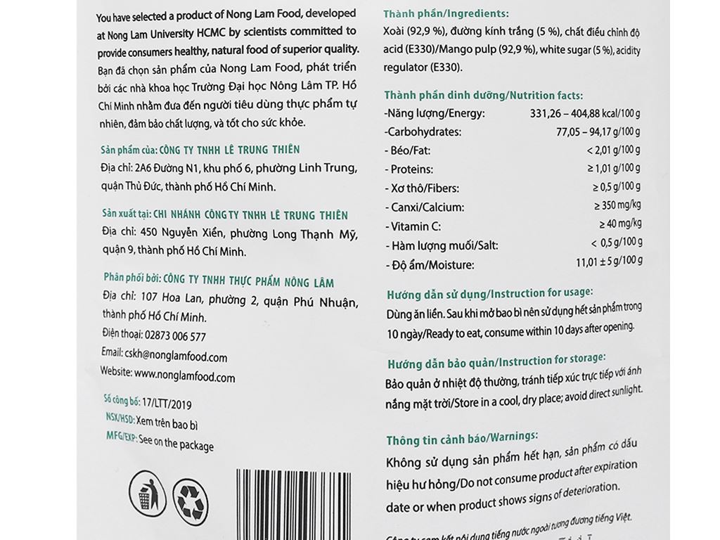 Xoài sấy dẻo Nong Lam Food túi 50g